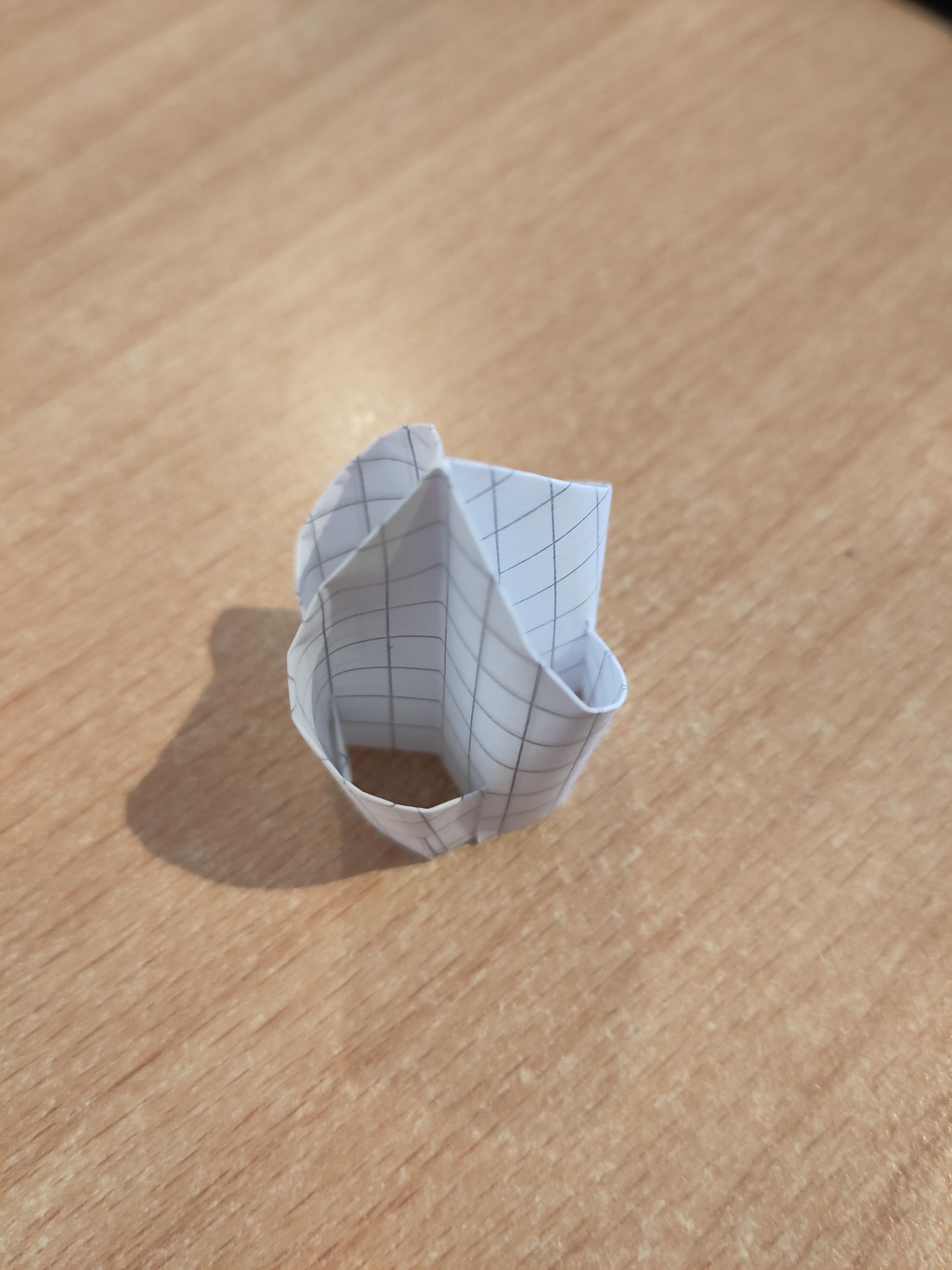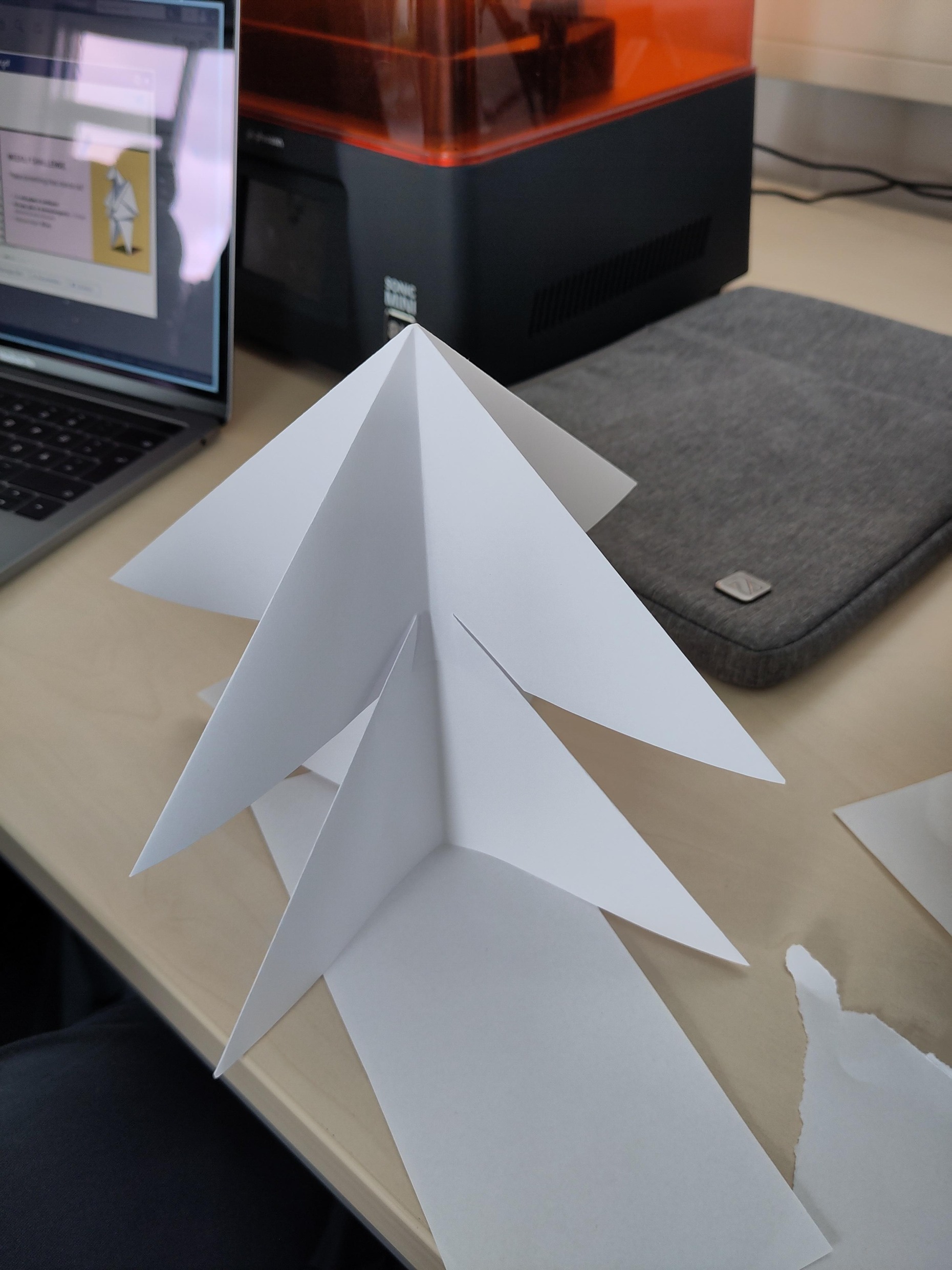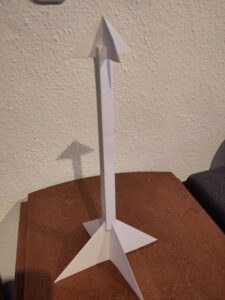 Die Basis war ursprünglich als Teil eines Weihnachtsbaums gedacht, wurde dann aber umgebaut. Am oberen Teil des Masts wird der Sensor dargestellt, wobei hier komplexere Darstellungen versucht wurden, sich aber als zu instabil erwiesen haben. Die Einzelteile wurden mit Slots verbunden und sind zusammen 41,5cm hoch.