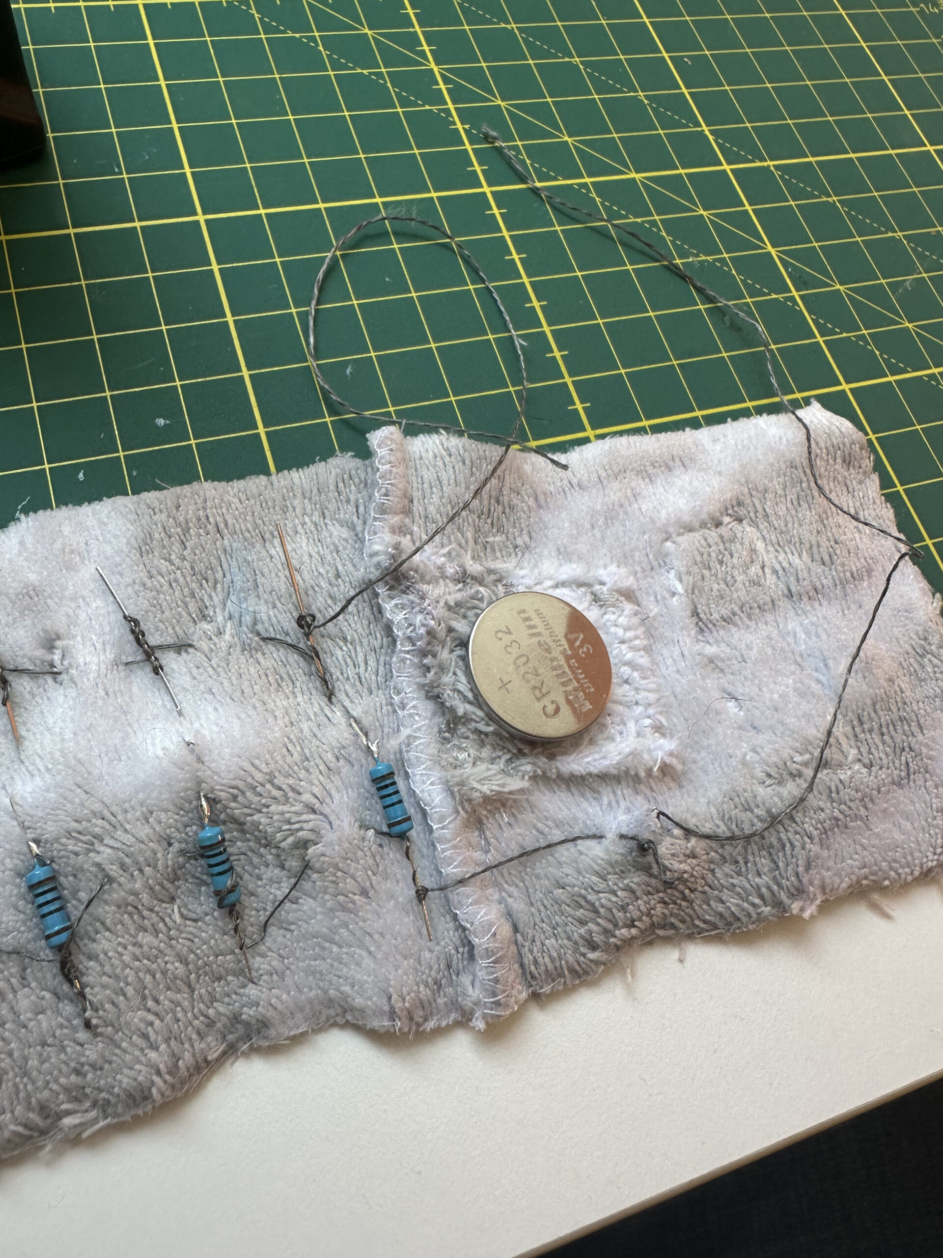 Für die zweite Challenge wollten wir primär mit einem für uns neuen Material, dem leitenden Garn, experimentieren.