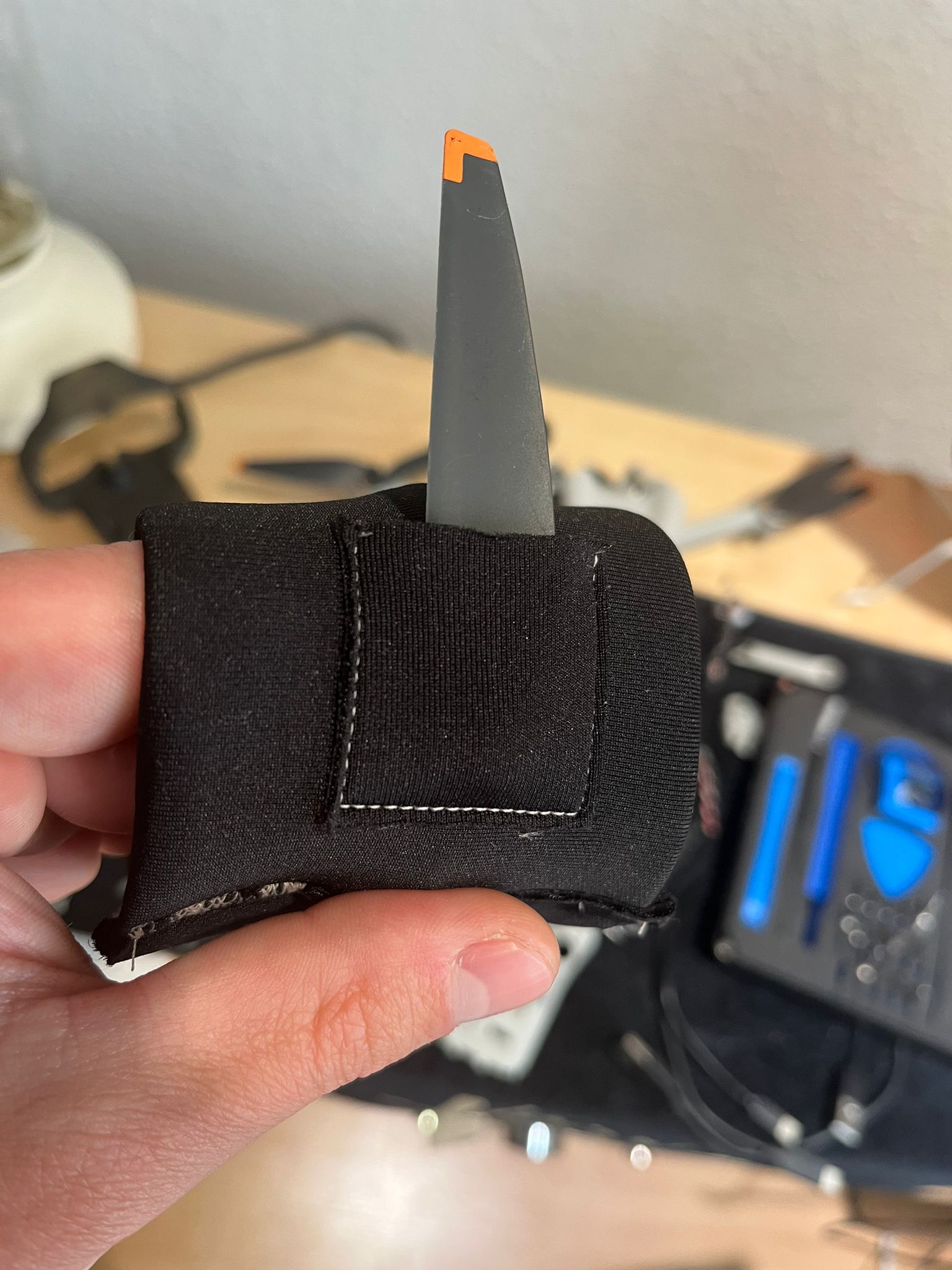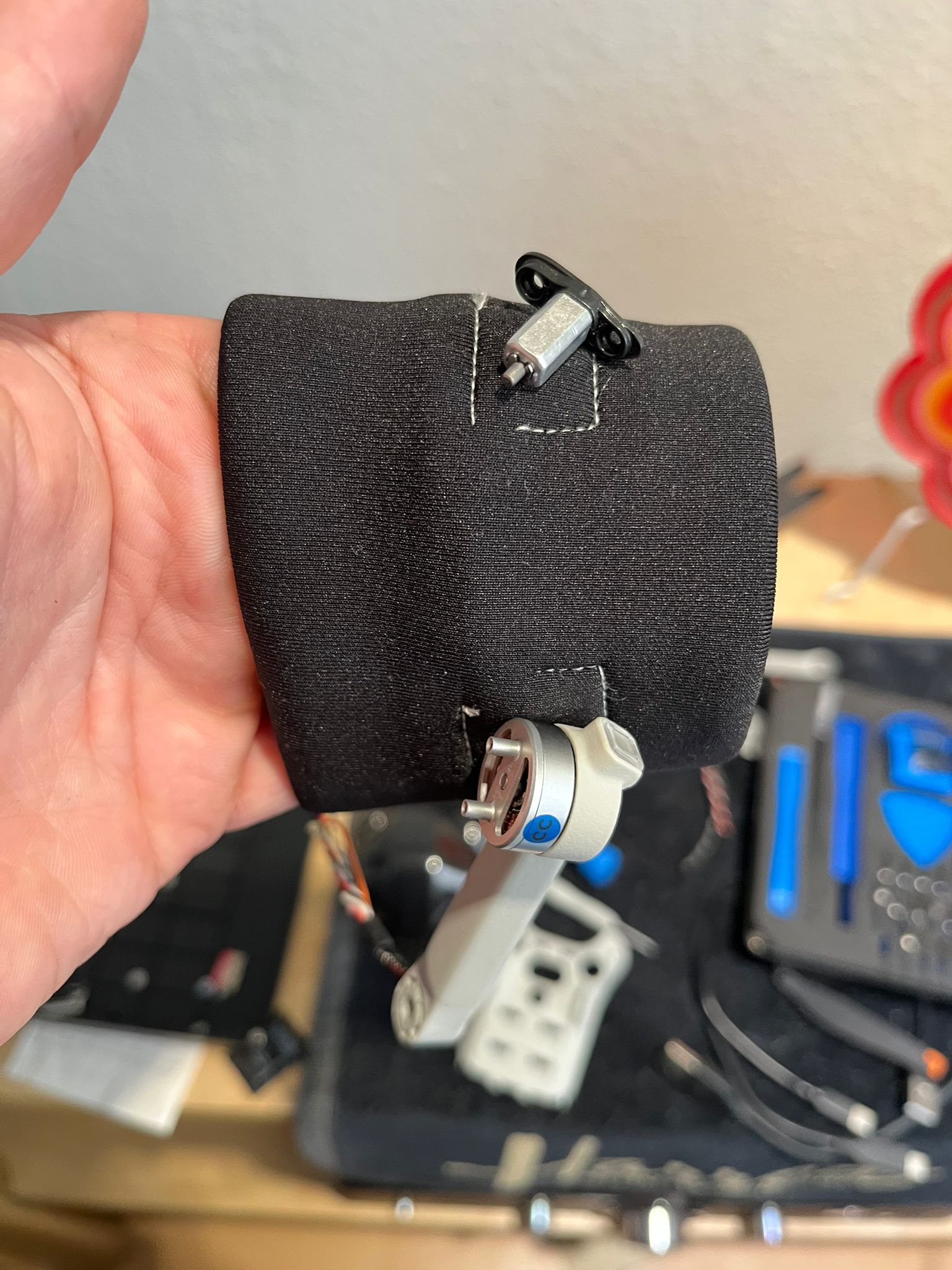 Unsere Idee war es, einen praktischen, tragbaren Halter für Kleinteile und Werkzeuge zu entwickeln, ideal für filigrane Arbeiten wie das Reparieren von Drohnen oder Elektronik. Hierfür entschieden wir uns für eine Manschette, die durch eingelagerte Magnete Kleinteile wie Schrauben oder auch leichte Werkzeuge halten soll.