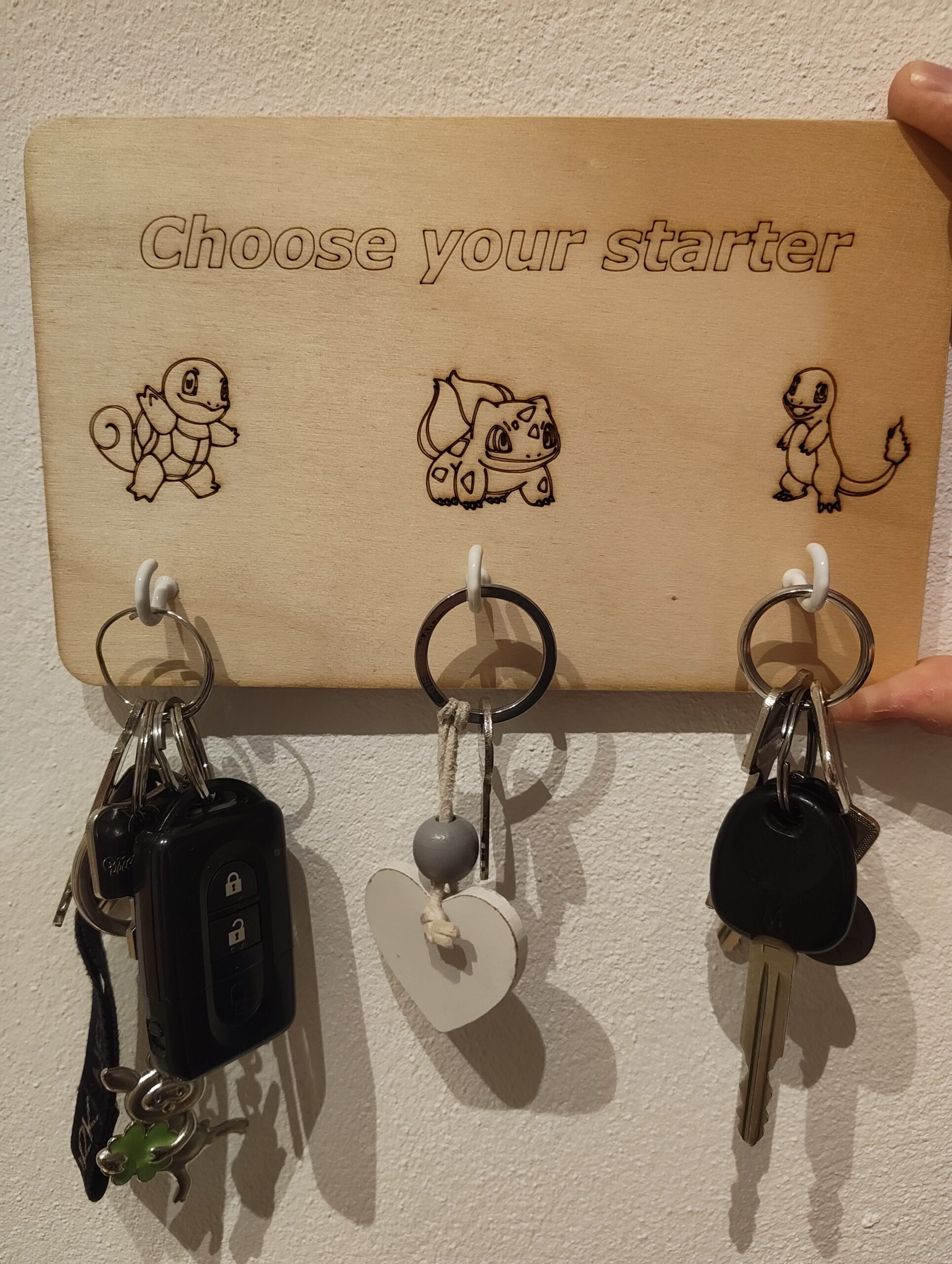 Über den Gravuren prangt der Schriftzug „Choose your starter“, während unter jedem Pokémon ein Haken für Schlüssel angebracht ist. Das Brett verbindet so Nostalgie und Funktionalität:Es ist nicht nur ein praktischer Schlüsselhalter, sondern auch ein Liebesbrief an die Kindheitserinnerungen vieler Pokémon-Fans.