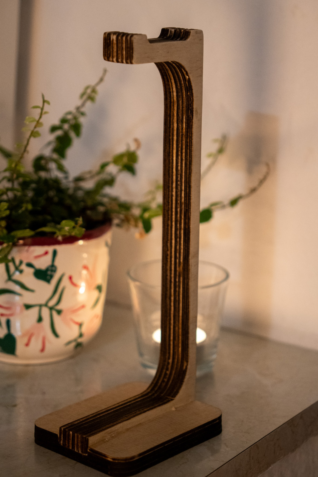 Unser Projekt für Woche 3 ist ein aus Holz geschnittener Kopfhörerhalter.