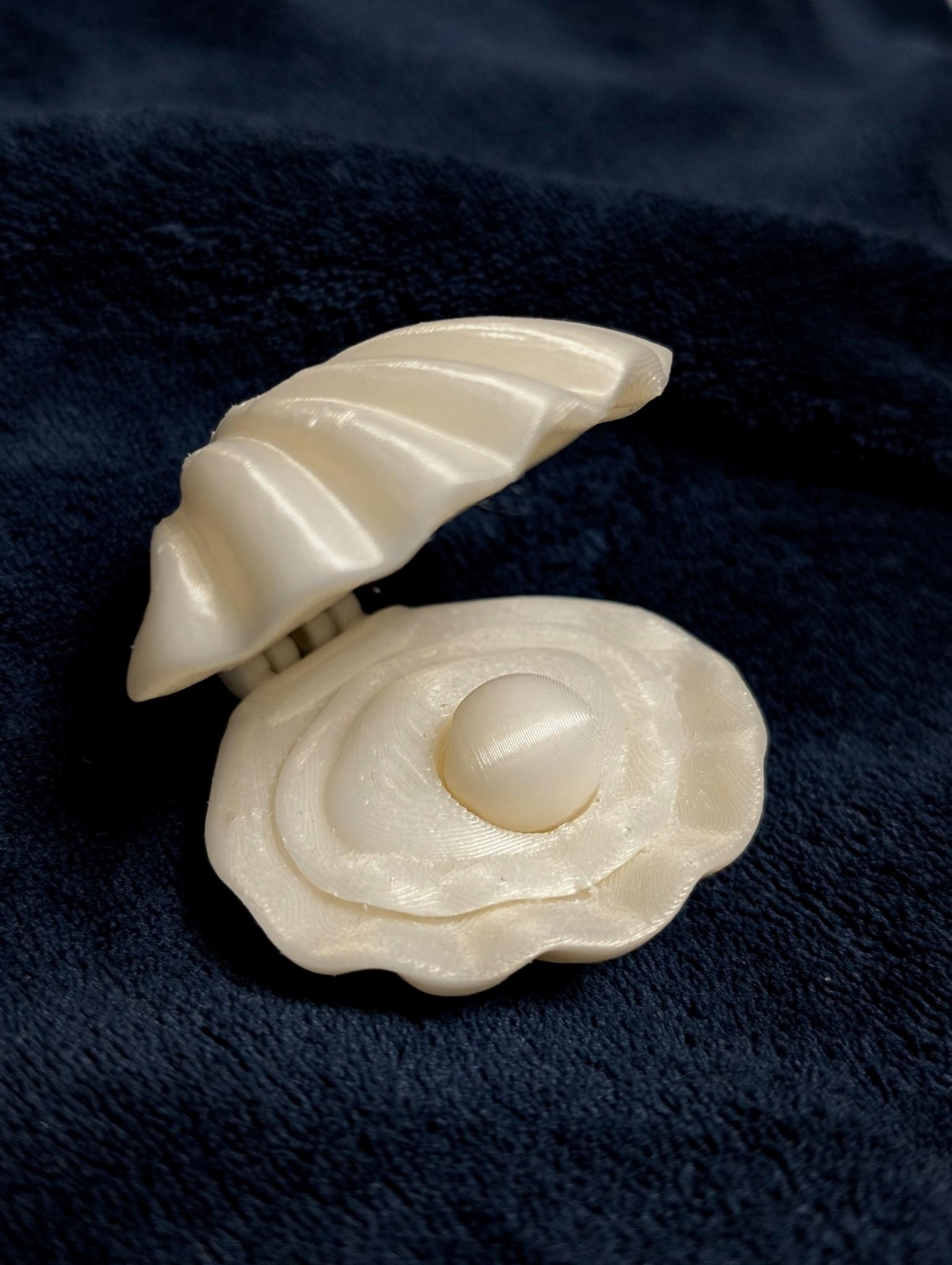 Bei der Herausforderung, ein Objekt mit integriertem Scharnier zu gestalten, haben wir uns für eine Muschel entschieden. Sie lässt sich leicht öffnen und gibt eine kleine Perle im Inneren frei.