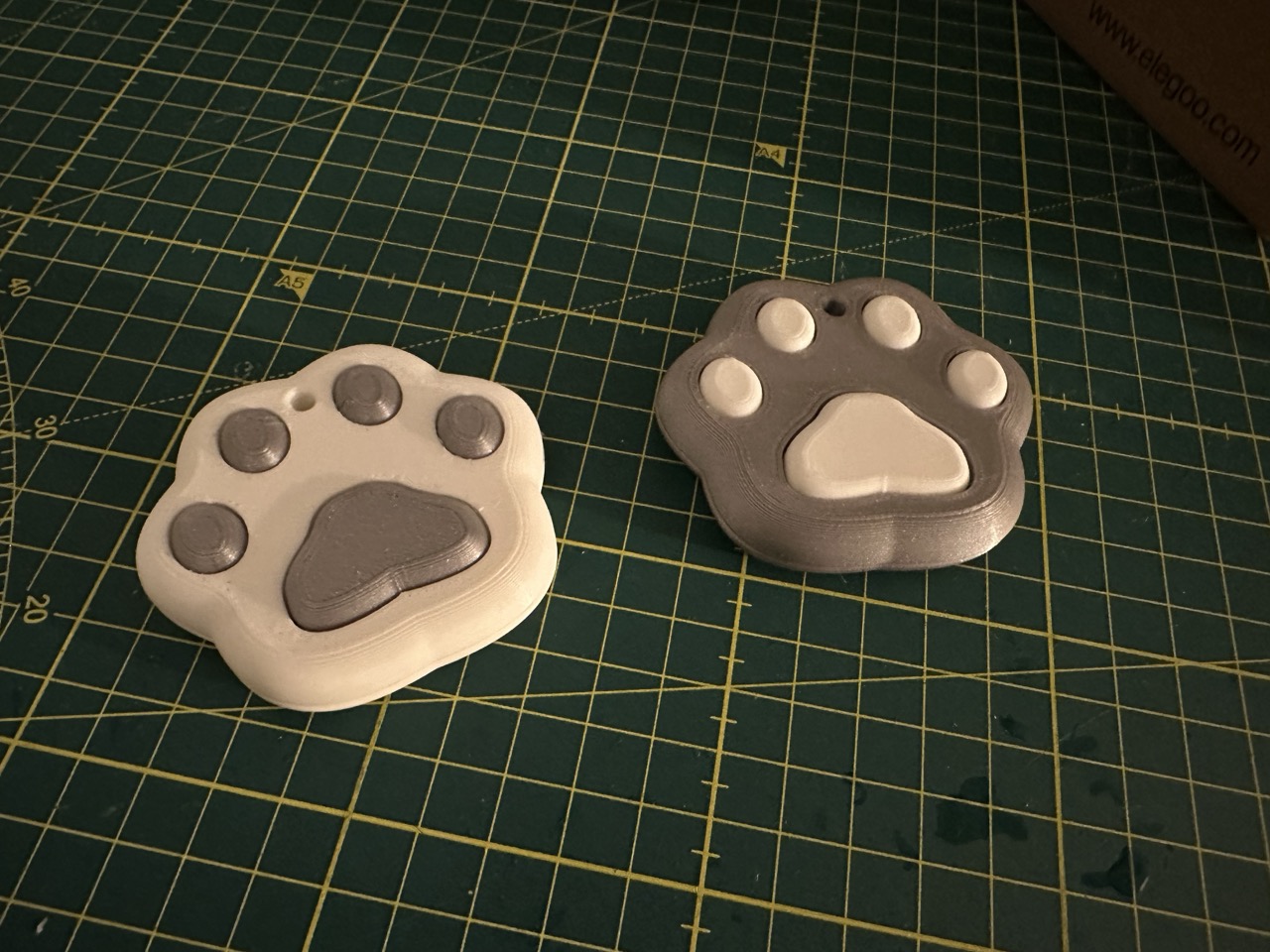 Für die Challenge diese Woche haben wir uns dafür entschieden, ein Fidgetspielzeug in Form einer Katzentatze zu erstellen, die auch (wenn gewünscht) als Anhänger an z.B. eine Tasche gehängt werden kann. Inspiriert war die Tatze von diesem Bild auf Pinterest.