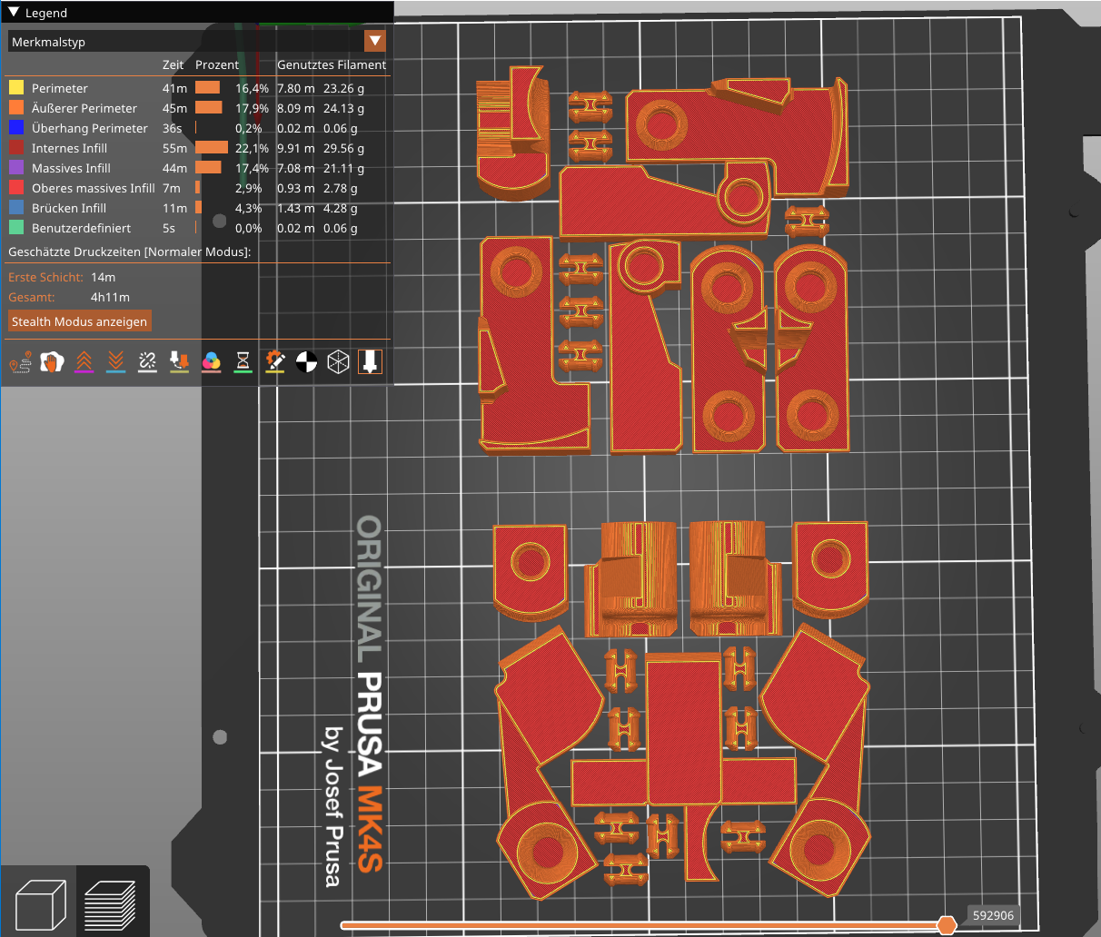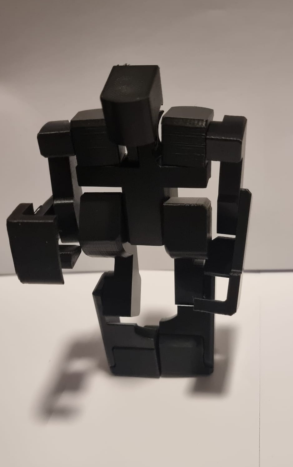 Für diese Challange haben wir ein transformierbares 3D-Modell gedruckt. Der Block-Bot besteht aus modularen Einzelteilen, die über Steckverbindungen (Pins) miteinander verbunden werden können. Alle Pins sind identisch und wurden horizontal gedruckt, um eine höhere Stabilität in den Gelenken zu erreichen.