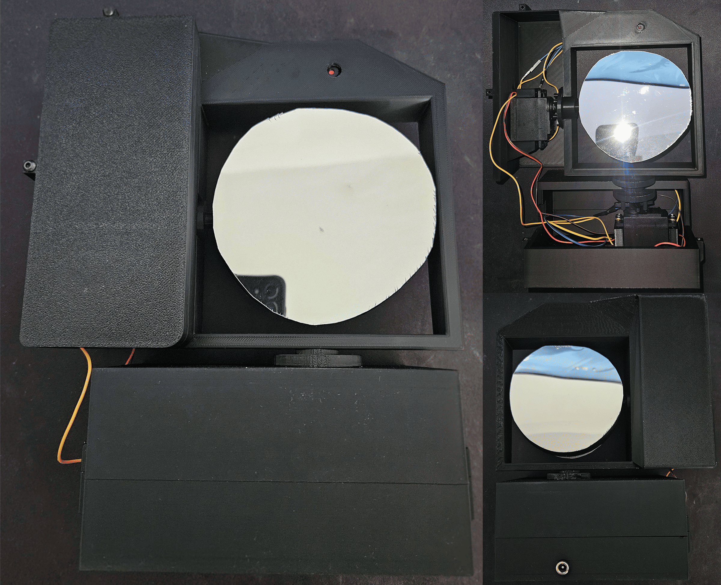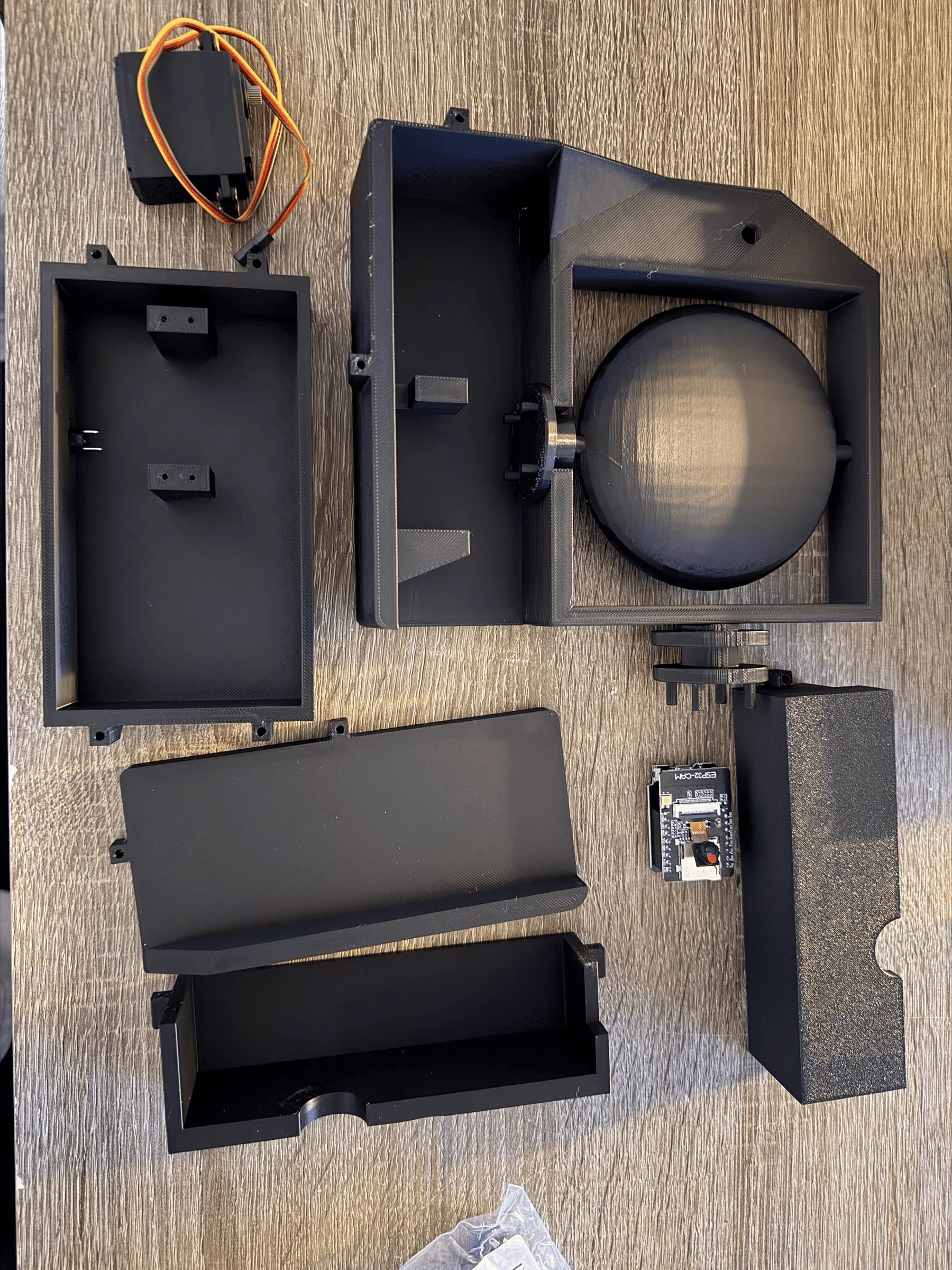 Gesteuert wird alles über ein ESP32-CAM Modul. Das Modul ist so programmiert, dass es Gesichter erkennt. Sobald ein Gesicht im Bild ist, werden die Motoren angesteuert und der Spiegel wird automatisch vom Anwender wegdreht.