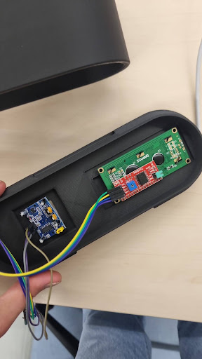 Anschließend wurden das LCD-Display und der Bewegungssensor in den Aussparungen der Front verbaut.
