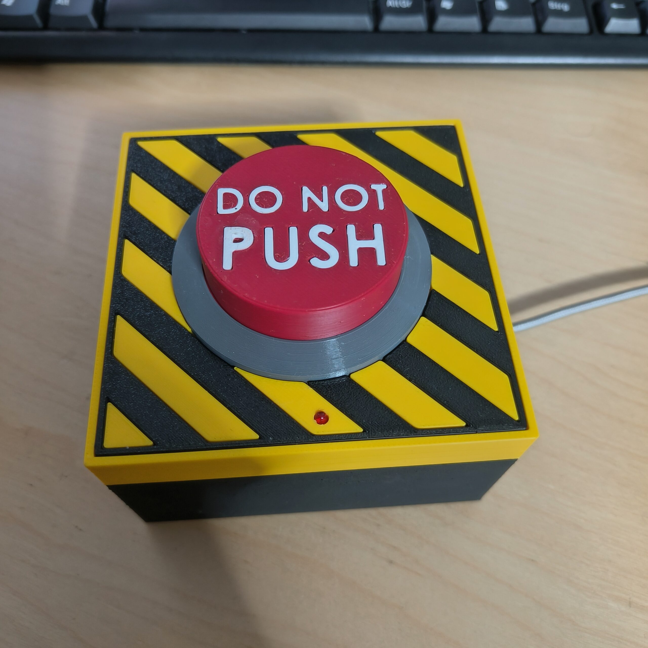 Für die letzte Challenge „Make something useless (but wonderful)“ wollten wir verschiedene Elemente kombinieren und einen Mikrocontroller ins Zentrum stellen. Nachdem wir einen Lautsprecher gefunden haben, der einfache Frequenzen ausgeben kann, ist uns ein klassischer Bomben-Zünder-Countdown in den Sinn gekommen. Daher haben wir uns auf die Suche nach einem großen roten Knopf im Stil einer „Selbstzerstörung“ begeben und ein 3D-Modell gefunden, das mit PLA und PETG gedruckt wurde.
